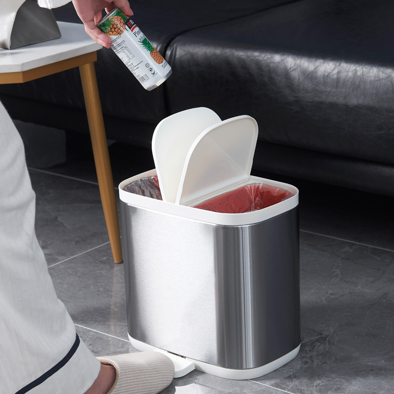 創(chuàng)意 雙層分類腳踏家用垃圾桶雙蓋大號(hào)簡(jiǎn)約干濕分離四分類垃圾桶